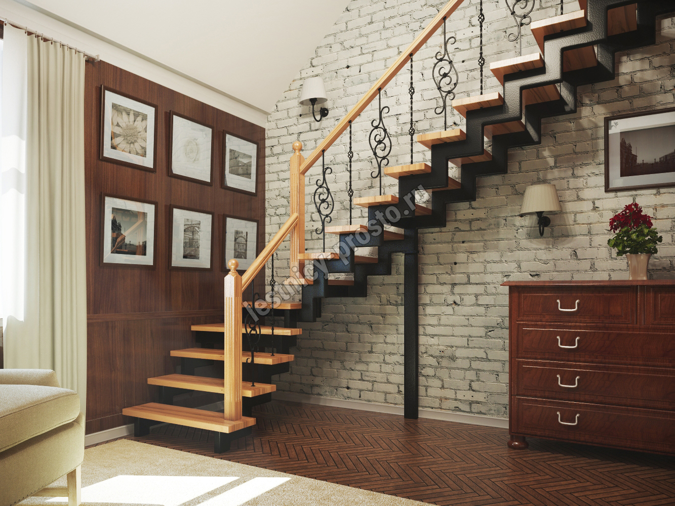 | Лестница Prosto Double 50×100 г-образная, ступени из сосны |