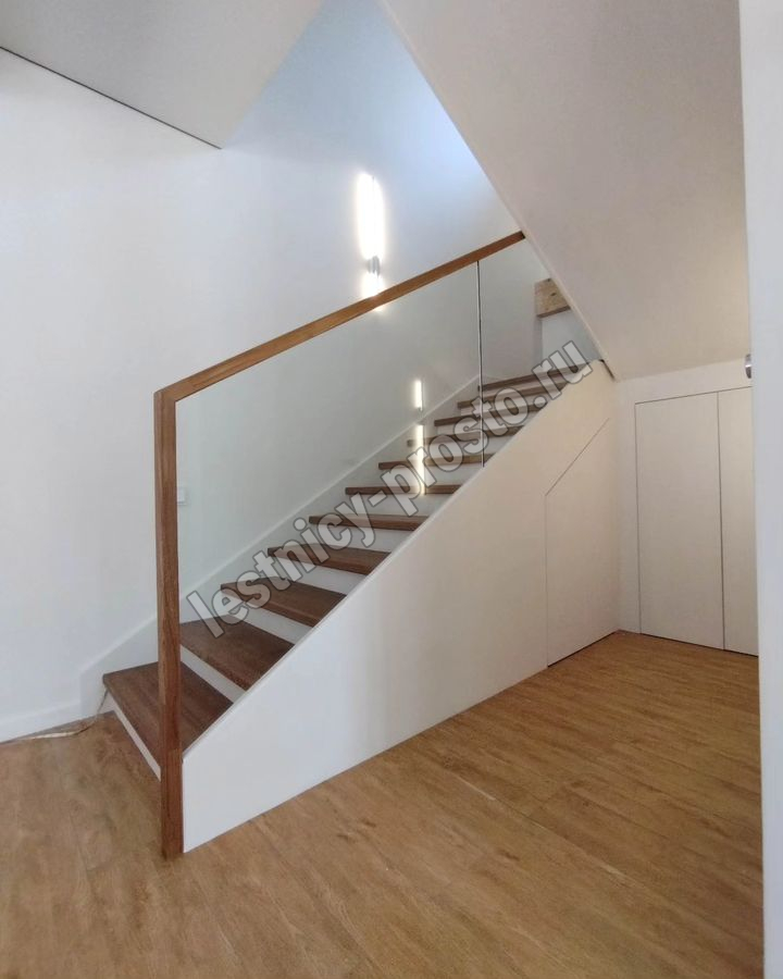 Ступени и поручень выполнены из цельноламельного срощенного дуба категории АВ.