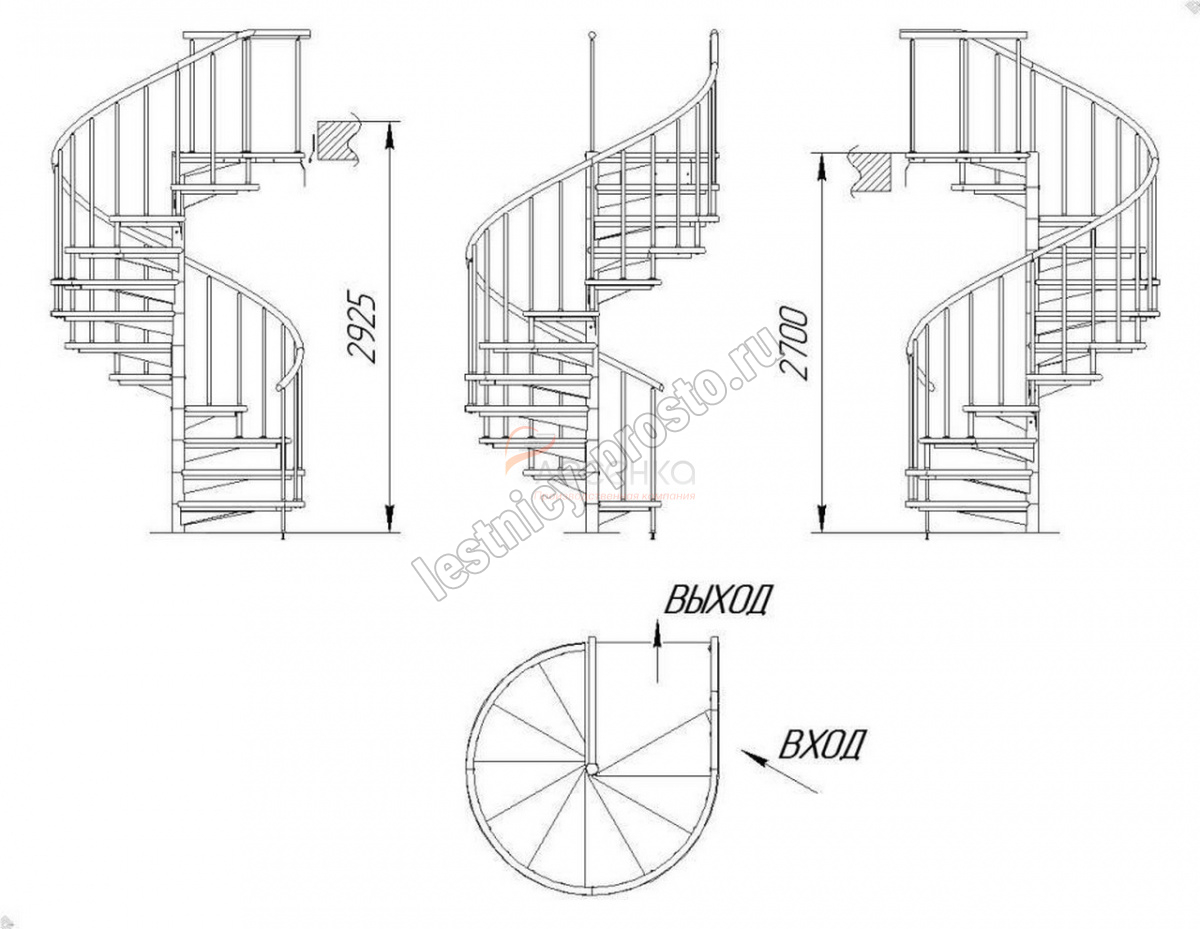 Винтовая лестница ЛЕС-1,8 высота 2700-2925, Черный, Лиственница