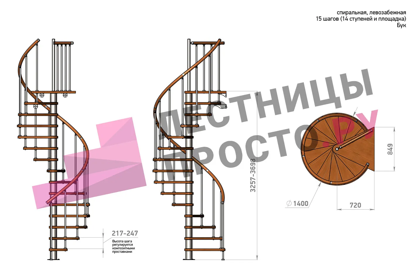 Правая, d=140см, 14 ступеней + площадка
