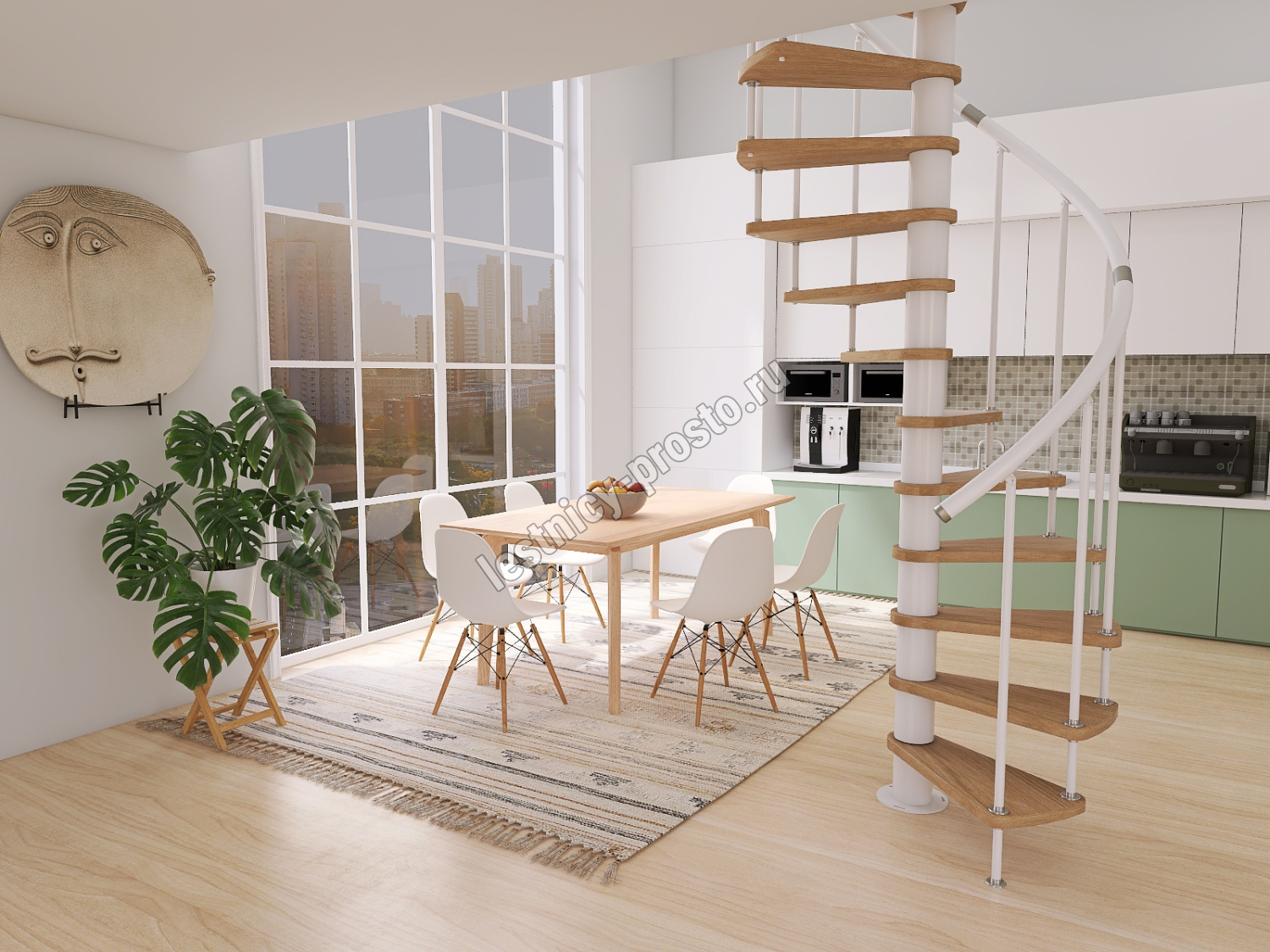 Винтовая лестница Prosto Spiral White D120см, h254.5-289.8 см