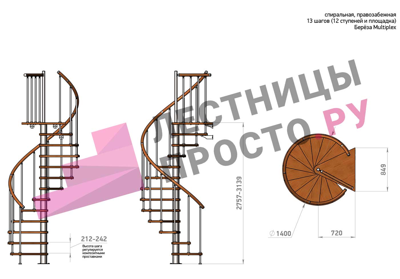Высота лестницы 2757 - 3139 (12 ступеней) мм