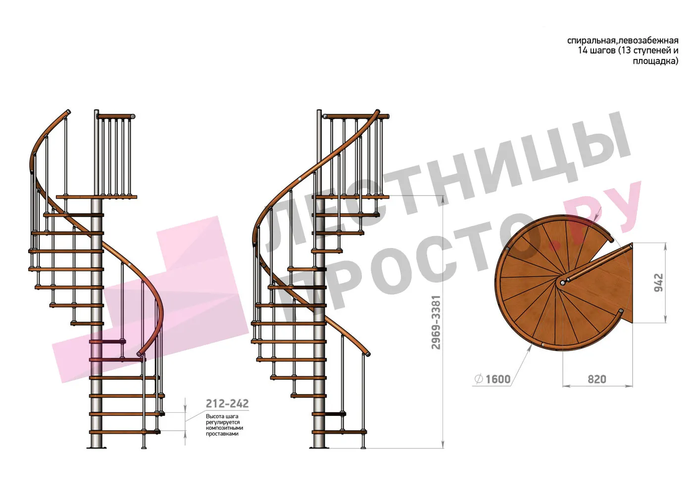 | Винтовая лестница Prosto Spiral White D160см, h275.7-313.9 см |