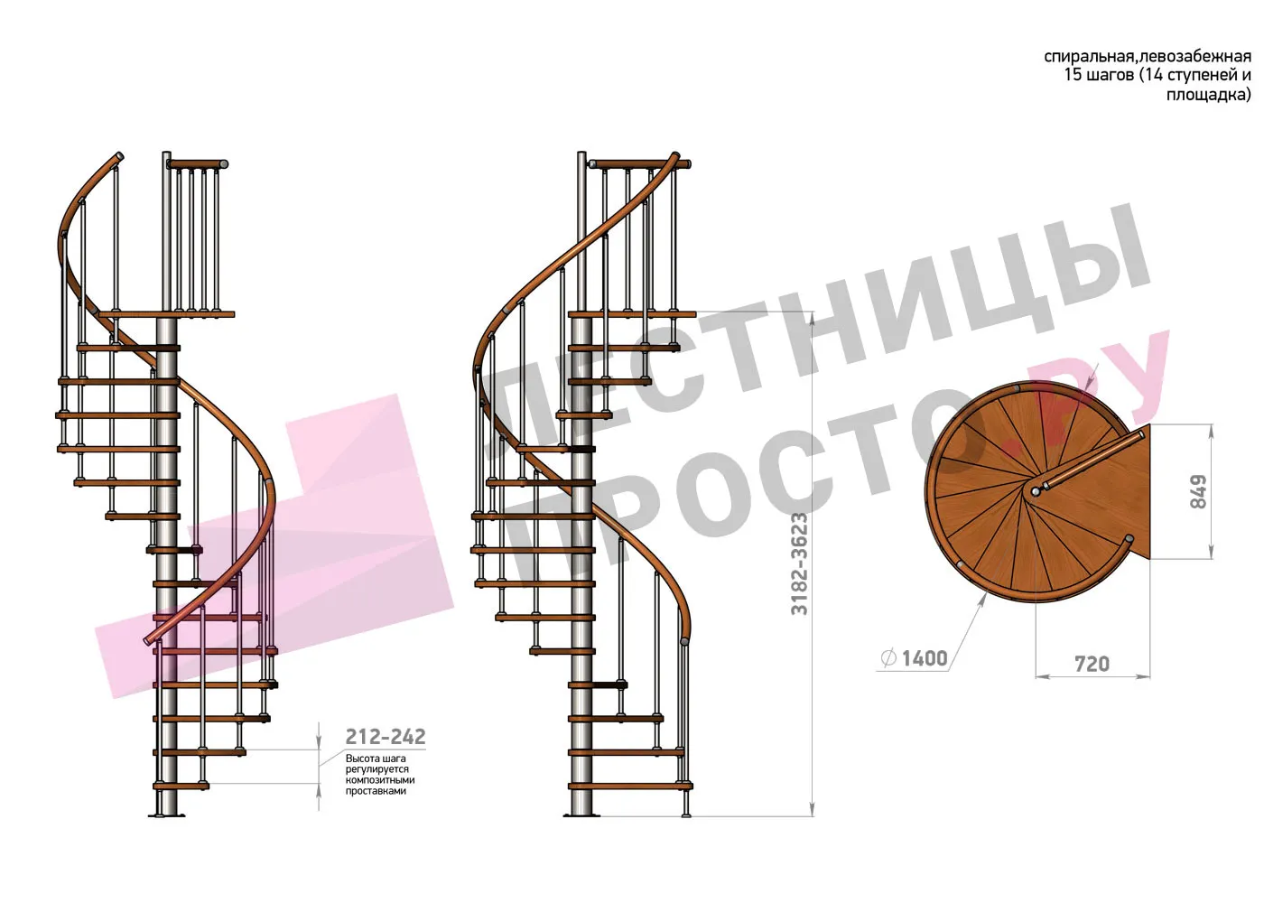 | Винтовая лестница Prosto Spiral White D140см, h318.2-362.3 см |