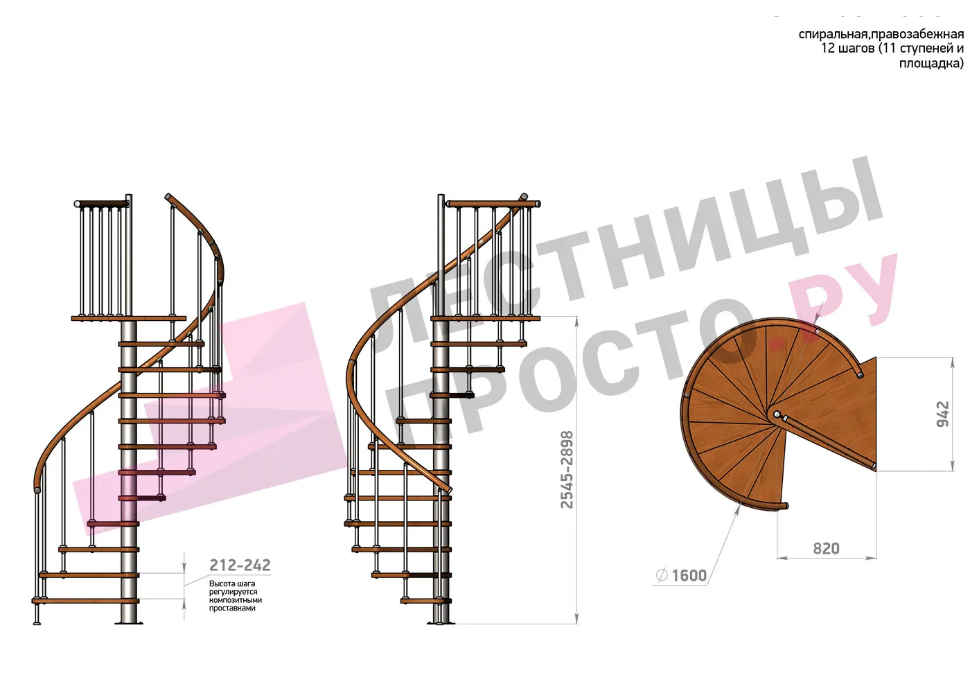 | Винтовая лестница Prosto Spiral White D160см, h318.2-362.3 см |