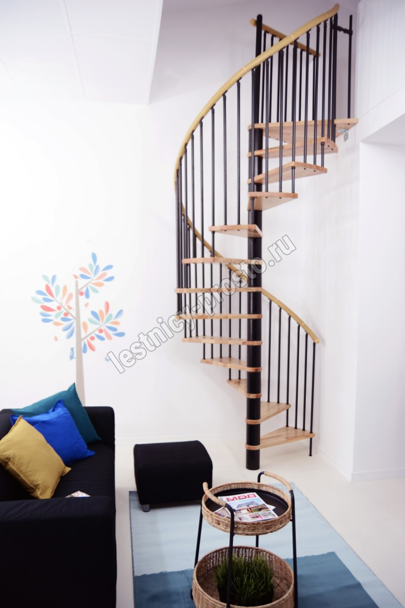 Винтовая лестница SPIRAL WOOD d160 см, чёрная, лакированный бук