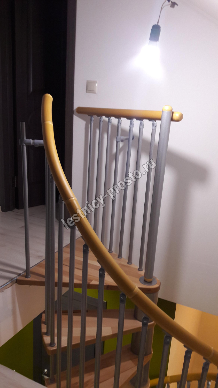 Винтовая лестница SPIRAL WOOD d120 см. серебро, лакированный дуб