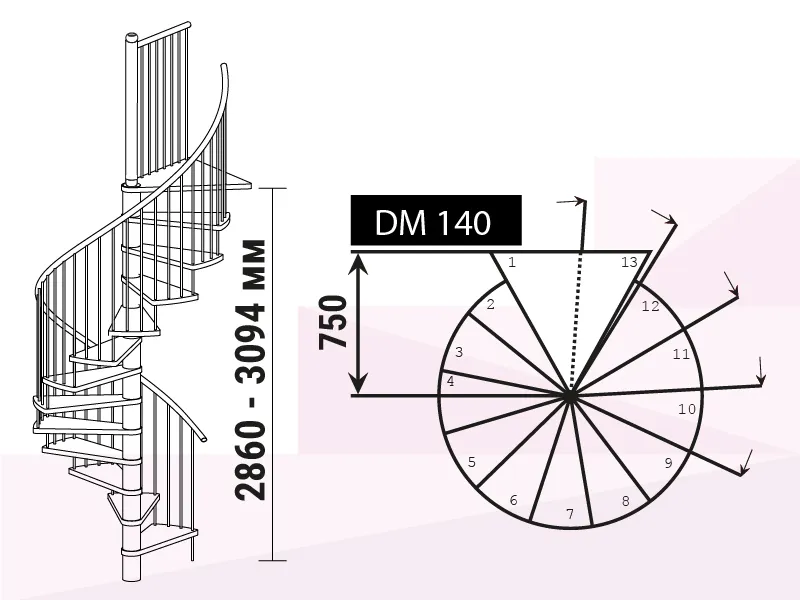 Высота лестницы 2860 - 3094 мм