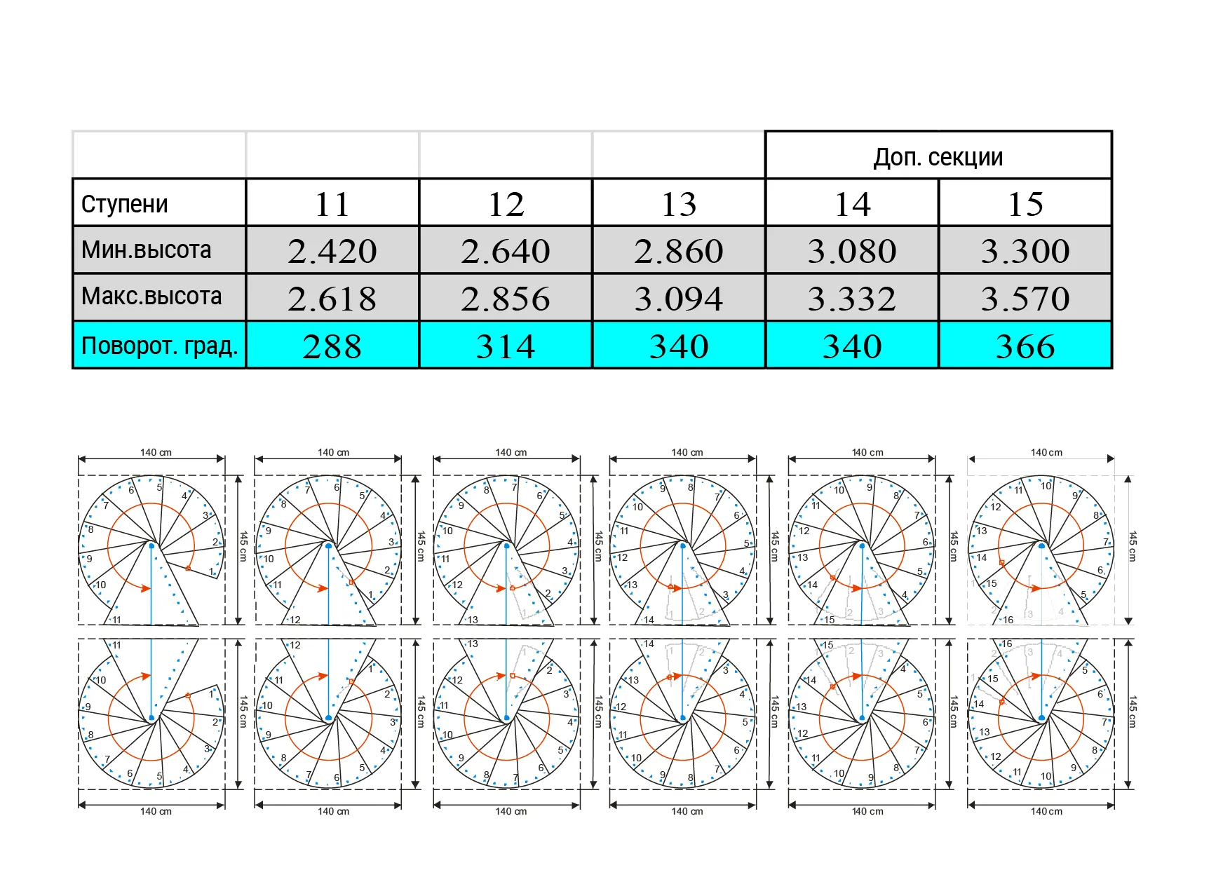 Cтупени и поручень изготовлены из массива бука и покрыты специальным лаком от компании Минка, который предотвращает царапины, сколы или стирание поверхности при интенсивном использовании лестницы. Благодаря возможности регулировать высоту шага с помощью пластиковых вставок (входят в базовый комплект), высоту лестницы можно варьировать в пределах от 2860 до 3090 мм. Кроме того, купив дополнительную секцию для этой лестницы, можно поднять высоту до 3320 мм.