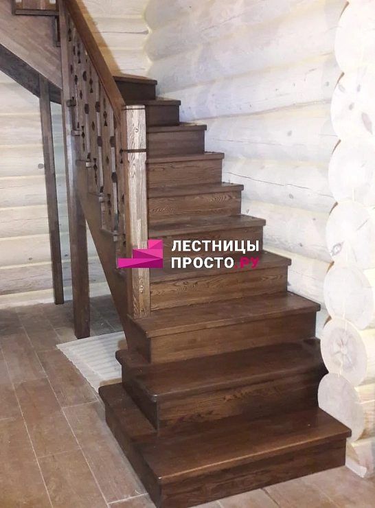 Лестница окрашена средством Varathane, цвет был подобран максимально близко к образцу Покупателя.
